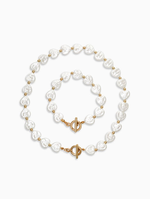 • Набор 2 предмета: бусы, браслет «Жемчуг барочный. Сердечки», 40/18 см, белый в золоте