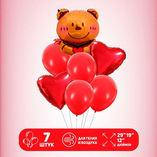 • Воздушные шары, букет «Мишка. Сердце», набор 7 шт.