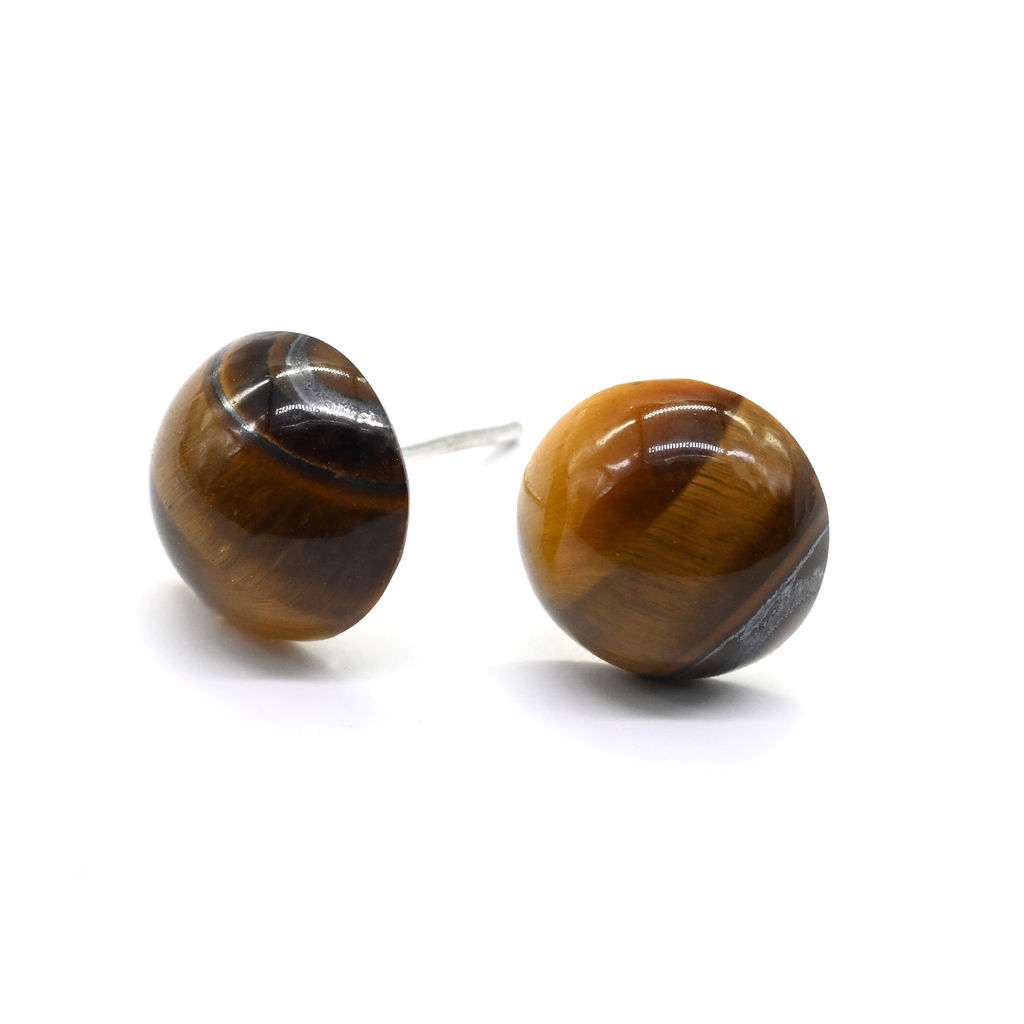 Серьги гвоздики (пусеты) из тигрового глаза 9-10мм. Радуга камня