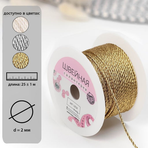 • Нить для плетения, d=2 мм, 25±1 м, цвет золотой