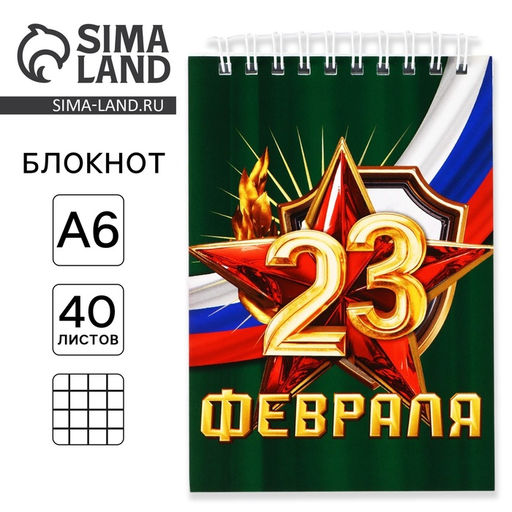• Цена за 10 шт. Блокнот А6, 40 листов в клетку, обложка картон «С 23 февраля»