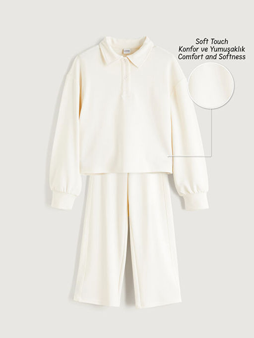 Polo Yaka K?z ?ocuk Soft Touch Sweatshirt ve E?ofman Alt