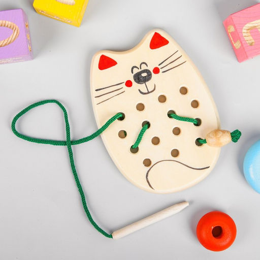 • Шнуровка «Кот», деревянная, МИКС