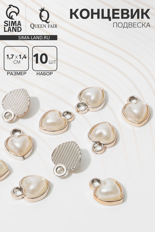 • Концевик-подвеска «Жемчуг» сердце 1,7×1,4×0,7 см, (набор10 шт.), цвет белый в золоте