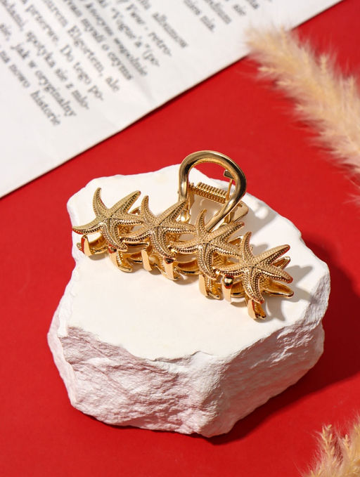 Цена за 6 шт. Краб для волос "Лейла море" морские звёздочки, 6,5 см, золото