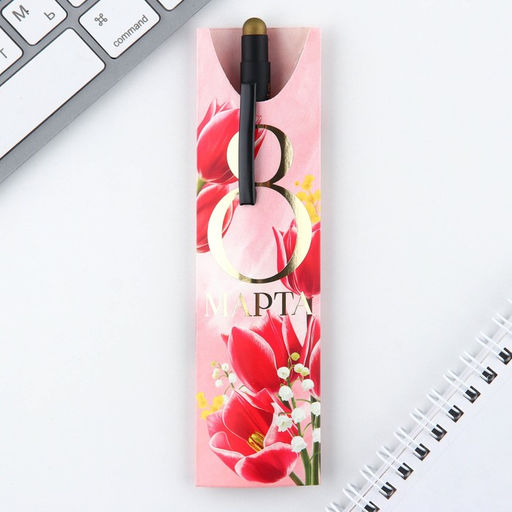• Ручка шариковая, синяя паста, 1.0 мм, металлическая с УВ-печатью в конверте 8 марта