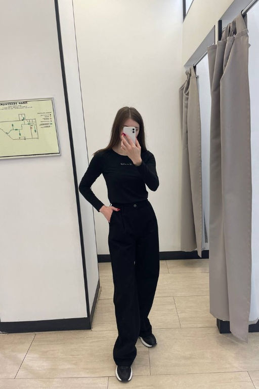 Брюки из денима, выполнены по классической джинсовой технологии (варка с эффектом легкого выбеливания). Прямой широкий крой. На задней части брюк выполнены накладные карманы, на передней - карманы с подкройным бочком, по линии талии защипы. Притачной пояс со шлёвками. Застёжка на молнию-гульфик и пуговицу.