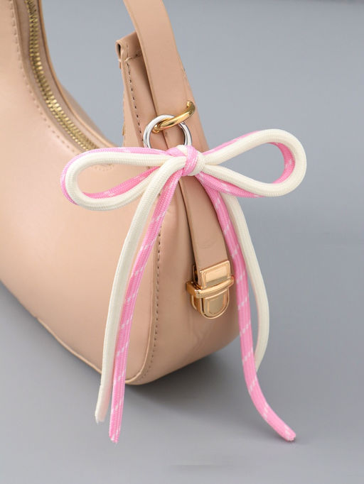 Цена за 3 шт. Брелок на карабине "Двойной бант" розово-белый 20х9,5х1 см