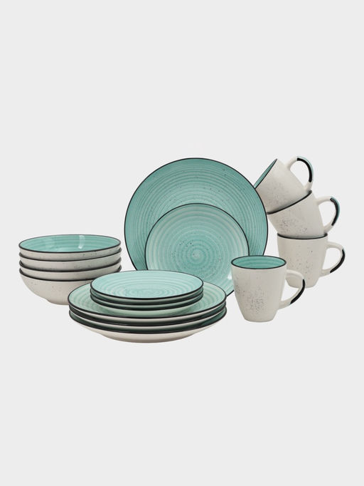 • Набор посуды Доляна Nature Тар, 16 предметов: тарелки 8 шт. d=19 см, 27 см, глубокие 4 шт. 830 мл, кружки 4 шт. 400 мл, керамика, голубой