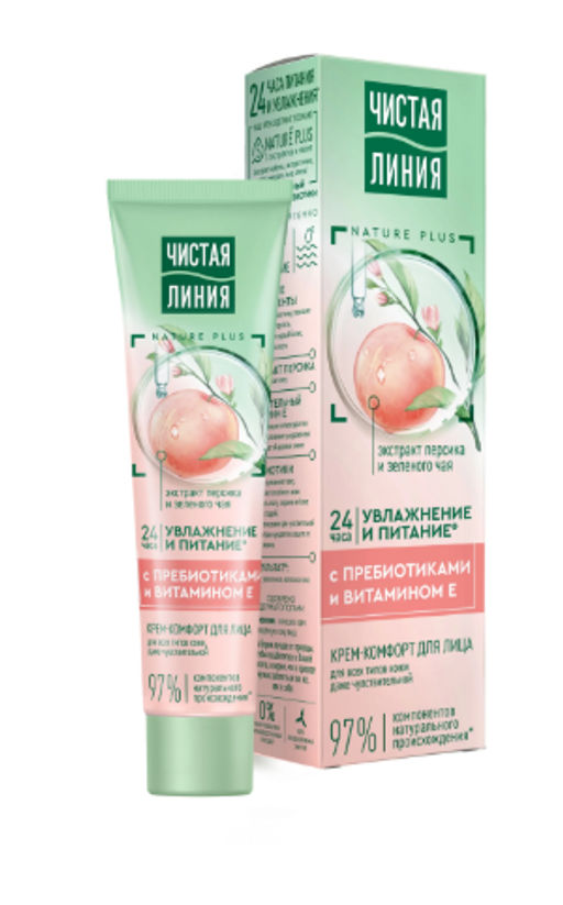 • ЧИСТ.ЛИНИЯ д/лица крем-комфорт Увлажняющий и питательный 40мл с витамином Е и пребиотиками