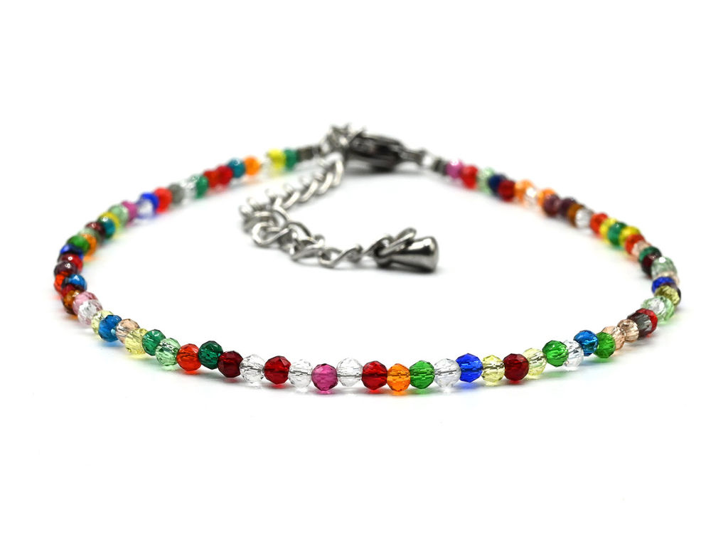 • Браслет из граненых бусин мелких 2мм циркон цв.ассорти, 17см