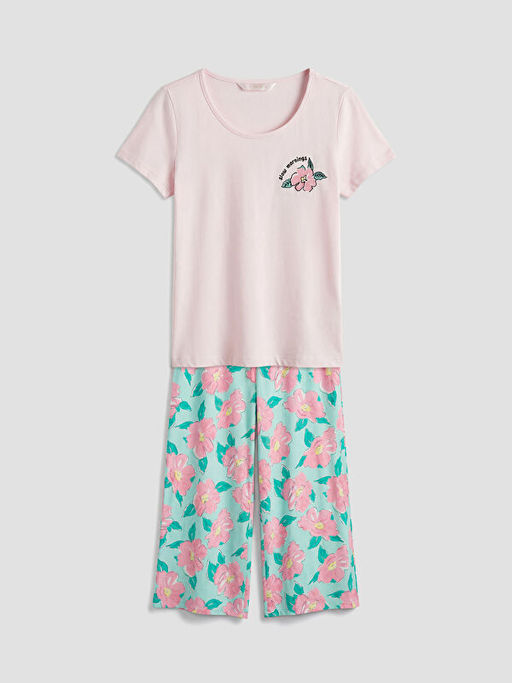• Bisiklet Yaka ?i?ekli Kad?n Kaprili Pijama Tak?m?