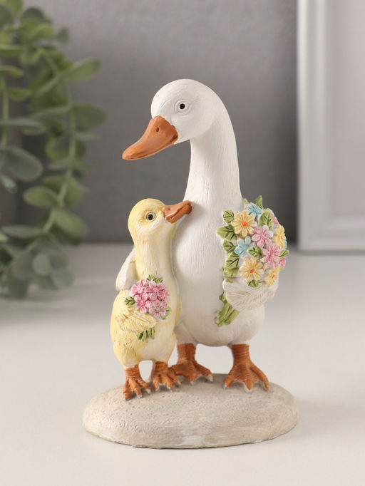 • Фигурка полистоун «Утка с утёнком с букетами цветов», 8×8×13 см