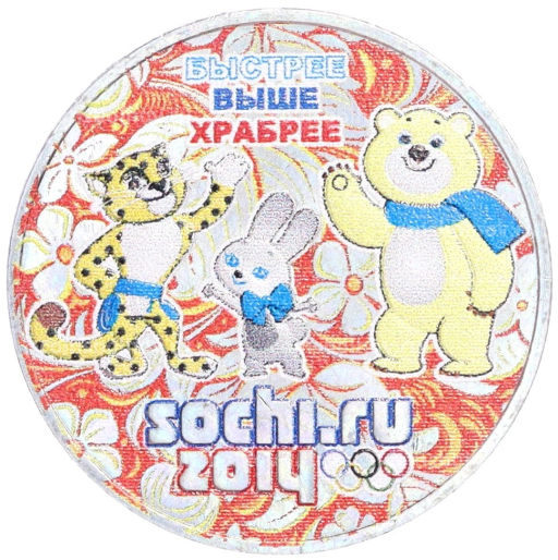 Монета 25 рублей 2014 года СПМД XXII зимние Олимпийские Игры 2014 в Сочи Талисманы Олимпиады (Цветная)