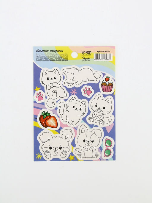 Цена за 10 шт. Наклейки детские «Милые животные», c раскраской, 11×16 см