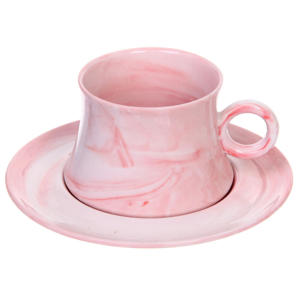 • Чайная пара "Мрамор" (кружка 200мл+блюдце), розовая