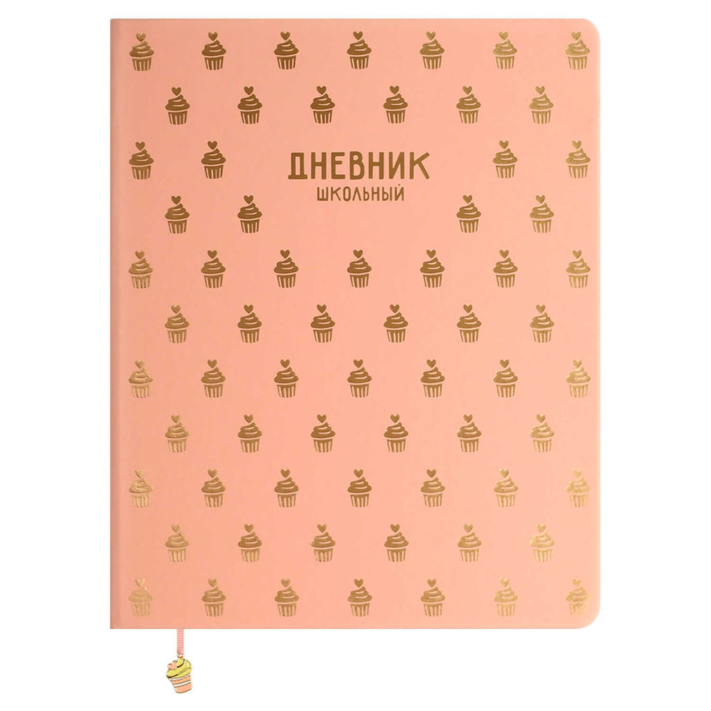 Дневник школьный арт. 68775 / 15 ПАТТЕРН КЕКСЫ (кожзам: А5+; твёрдый переплёт, материал обложки: искусственная кожа "Софт-тач"; декор: тиснение фольгой; способ крепления блока: ниткошвейный; вн. блок: 48 л., белый офсет 80 г/м?, печать в одну краску, справочный материал: универсальная шпаргалка; отделка среза: окрашивание пантоном; закладка: одно ляссе; форзац: печать пантоном; особенности: ляссе с декоративной фигуркой из металла с эмалью; индивидуальная упаковка: промостикер + ПЭТ-пакет)