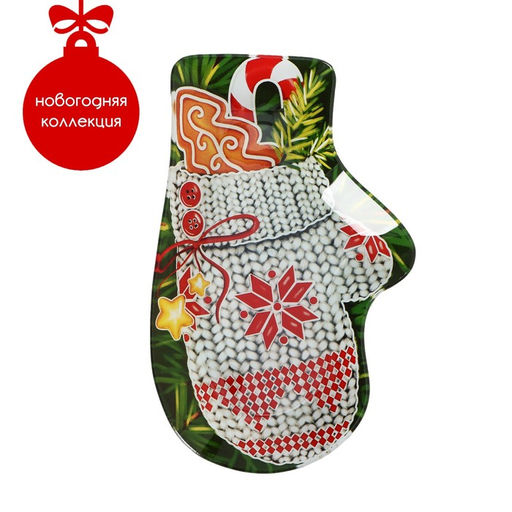 Блюдо новогоднее сервировочное Доляна «Рукавица. Подарки», 22.5×14 см, стекло