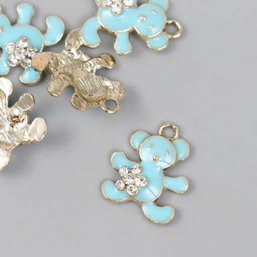 Цена за 5 шт. Декор для творчества металл, эмаль, стразы Мишка с цветочком, голубой, золото, 0.5?1.7?2 см