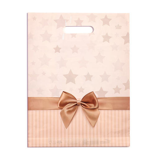 Праздничный блеск для особенных моментов! Пакет с золотыми звёздами и вырубной ручкой — это нарядная упаковка с праздничным дизайном для небольших, но значимых подарков. Сочетание повышенной плотности и нарядного оформления делает его идеальным выбором для торжественных случаев.Праздничный дизайн: Золотистые звёзды и банты создают атмосферу торжества. Пакет подходит для подарков на дни рождения, новогодние праздники или романтические свидания.Универсальный размер: Формат 31×40 см с донной складкой удобен для большинства небольших подарков. В пакет помещаются книги, косметика, бутылка вина или кондитерские изделия.Проверенная прочность: Плотность 60 мкм обеспечивает защиту содержимого. Вырубные ручки удобно лежат в руке даже при полной загрузке до 3 кг.Многоразовое использование: Золотистый дизайн позволяет использовать пакет после праздника — для хранения украшений, документов или как стильный аксессуар.Для тех, кто ценит детали: Этот пакет выбирают, когда хочется создать особое настроение. Он превращает даже небольшой подарок в праздничный сюрприз, сохраняя все преимущества прочной упаковки. Праздник, который можно унести с собой! Форма: Прямоугольная. Размер, см: 31 х 40. Рекомендуемая нагрузка, кг: 3. Толщина, мкм: 60. Тематика: Банты. Тематика: Звёзды. Рисунок: Да. Символ года: Нет. Тематика праздника: Универсальная тематика. Отделка пакета: Декор. Расширение: Донная складка. Вид ручки: Вырубная. Форма пакета: Вертикальный. Сфера применения: Повседневные пакеты. Сфера применения: Для презента (универсальный). Особенности: Креативный. Бесплатная доставка: Да. Примечание: Размер товара может отличаться от заявленного на ± 3 см..