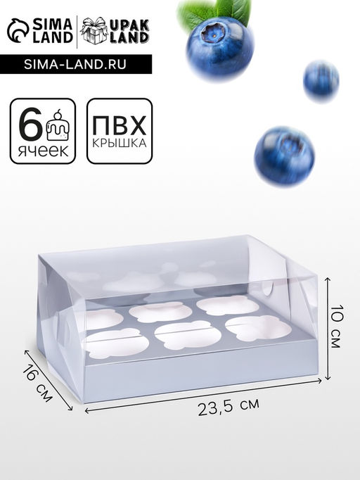 Коробка подойдет для капкейков, маффинов, пирожных или другого десерта.Преимущества: - Самосборная и не требует дополнительного скрепления;- Рассчитана на 6 капкейков - коробка оснащена специальными отделениями под каждый капкейк;- Изготовлена из картона премиум-класса.Придайте коробке форму, поместите десерт внутрь и закройте крышку.Материал полностью безопасен для контакта с пищевыми продуктами. Вид упаковки: Для капкейков. Форма: Прямоугольная. Плотность, г/м²: 300. Длина, см: 23.5. Ширина, см: 16. Высота, см: 10. Вместимость, шт.: 6. Тематика: Однотонная. Вид упаковки: Картонная упаковка. Тематика праздника: День рождения. Тематика праздника: Универсальная тематика. Вид ручки: Без ручки. Вид: Упаковка для маффинов/макарони. Вид: Кондитерские коробки. Вид еды: Для десертов. Вид еды: Для пирожных. Вид: Складные коробки. Наша разработка: Да. Размеры товара: 16/10/23.5.