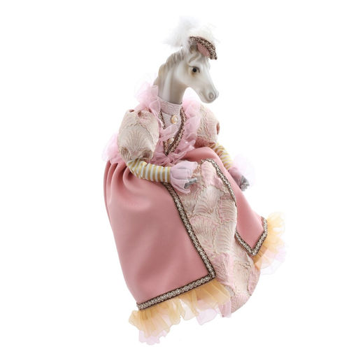 Набивная игрушка с подвесом "Лошадь" в придворном платье изящный и необычный элемент новогоднего или интерьерного декора. Мягкая фигурка лошади выполнена с особым вниманием к деталям: роскошное платье из блестящей ткани придаёт образу торжественность и сказочность. Игрушка создаёт атмосферу уюта и волшебства, отлично смотрится под ёлкой, на полке или в композиции с другими праздничными аксессуарами. Благодаря удобной петельке, изделие можно подвесить , например, на ёлку.Подойдёт как украшение, сувенир или оригинальный подарок.Стоит отметить, что голова игрушки выполнена из пластмассы, что делает изделие более легким, чем другие полимерные материалы.
