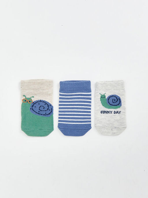 • Bask?l? Erkek Bebek Patik ?orap 3l?