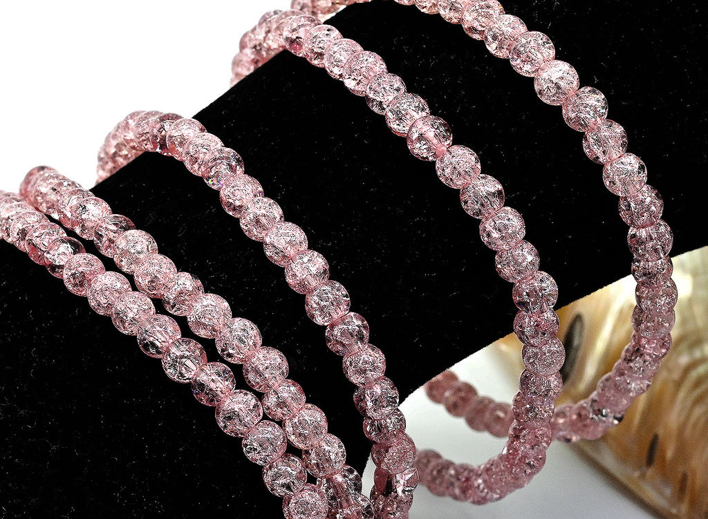 • Браслет из сахарного кварца шарик 4мм цв.клубничный, 17см