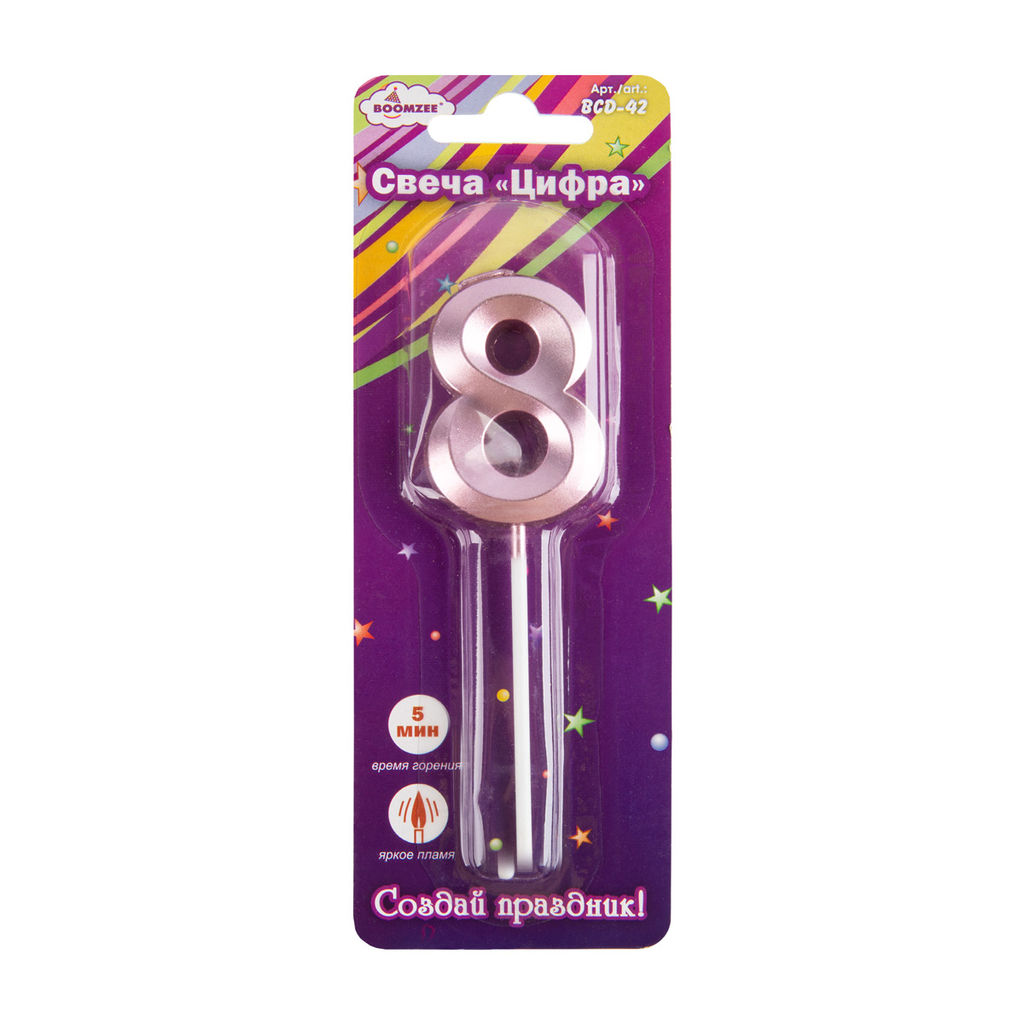 Свеча для торта "Цифра" ТМ "BOOMZEE" арт. BCD-42 . Декоративная свеча для торта "Цифра" отлично подойдёт для украшения праздничного торта или другого десерта для Дня Рождения, юбилея или Нового Года. Такие свечи озарят любой Ваш праздник мягким свечением, а желания, загаданные под их волшебный свет, обязательно исполнятся! Преимущества наших свечей: Отличное качество воска Стандартное время горения: 5 минут Оптимальная толщина свечи, что делает ее менее хрупкой. -- Характеристики -- Мин. кол-во для заказа: 12 Кратность: 12 Артикул: BCD-42 Вес единицы продажи (кг): 0.162 Вес отгрузочной упаковки, г: 162 Вес, г: 7.5 Время горения, часов: 0.12 Высота, см: 5 Габариты отгрузочной упаковки, см: 17.4*14.3*6.3 Количество: 12 Количество в пачке: 1 Количество в транспортной упаковке: 24 Максимальная температура хранения: 35 Марка: "BOOMZEE" Минимальная температура перевозки: 0 Объем единицы продажи, л: 1.57 Тип товара: Свеча Тип упаковки: в блистере Толщина: 0.7 см Форма: цифра Ширина, см: 3.5 Праздник: День Рождения