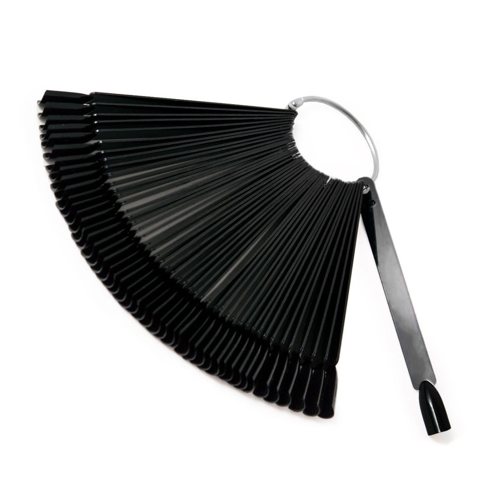 Веерная палитра изготовлена из пластика, она станет удобным инструментом для работы мастеров и начинающих специалистов маникюра. Металлическое кольцо плотно закрывается, но при этом достаточно легко открывается для удаления или добавления типс. Количество 50 шт.