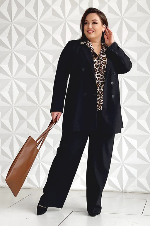 Стильный брючный костюм из мягкой   ткани - состоит из жакета и брюк.