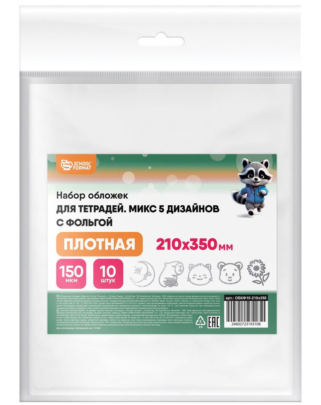 Набор обложек 10 шт ПВХ 150 мкм 210х340 мм Schoolformat для тетрадей с фольгой, с индивиду...