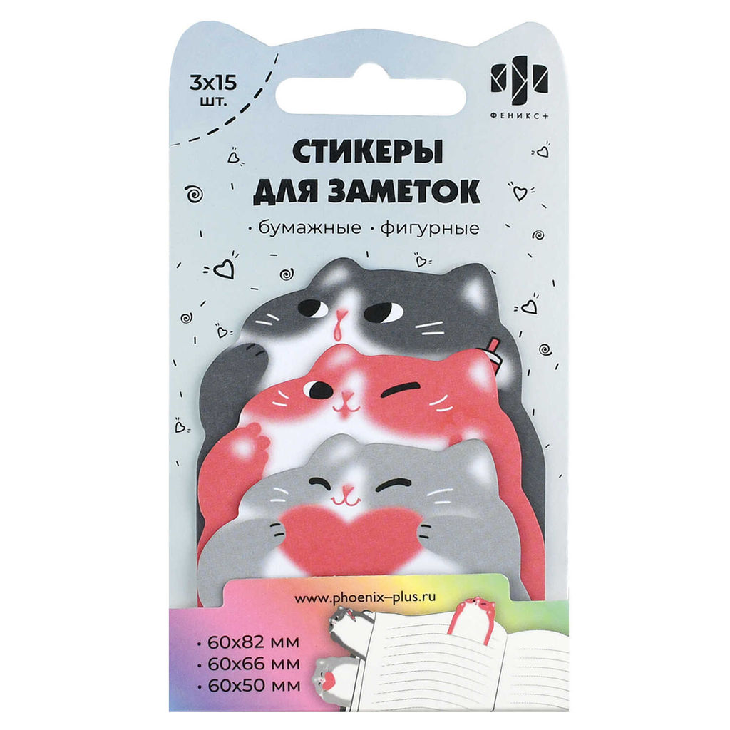 Стикеры для заметок бумажные, 60х81; 60х66; 60х50, 45 шт., арт. 71617 / 25 КОТЫ (материал: дизайнер