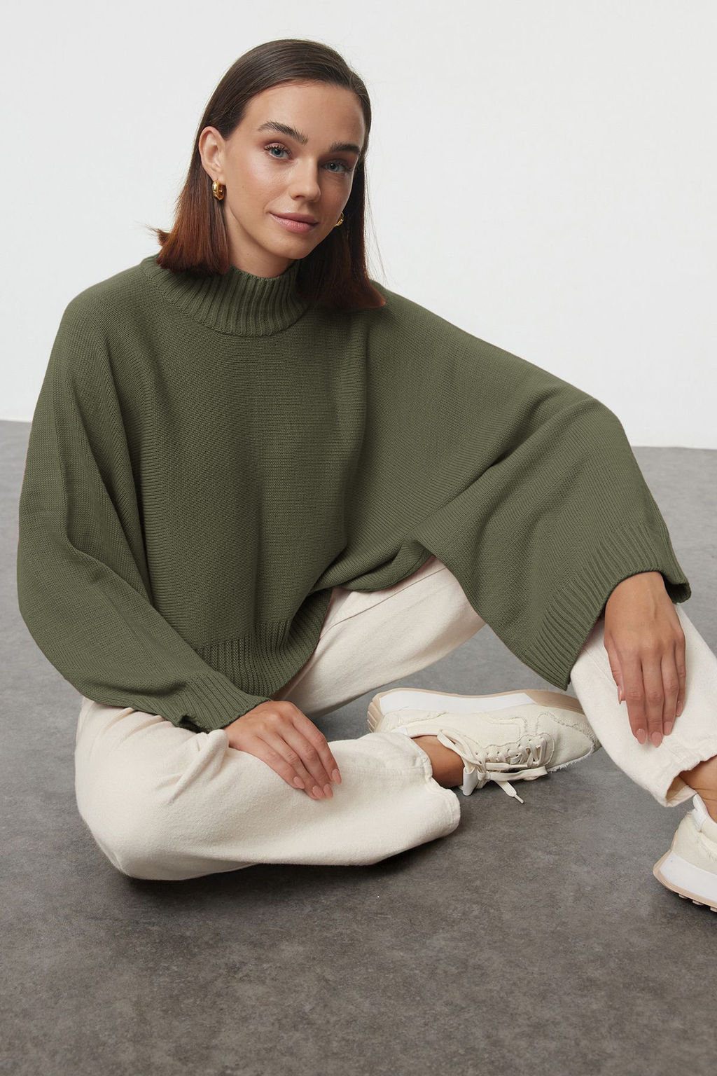 • Yesil Genis Kal?p Ispanyol Kol Triko Kazak TWOAW23KZ01838