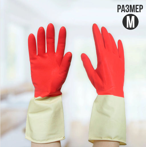 Перчатки латексные сверхпрочные Биколор, размер M (бело-красные), Libry предназначены для выполнения хозяйственно-бытовых и садовых работ.