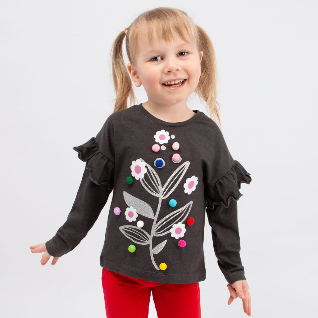 Кофта для девочки Bonito. Стильная кофточка с принтом и помпонами.