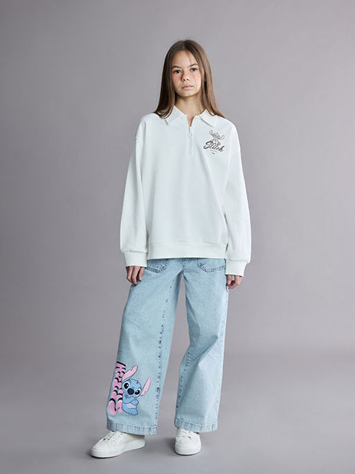 • Wideleg Stitch Bask?l? K?z ?ocuk Jean Pantolon