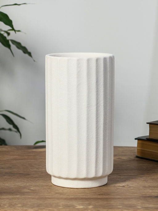 Ваза для цветов «Абиджил», линии, h=21, d=11 см, керамика, белая