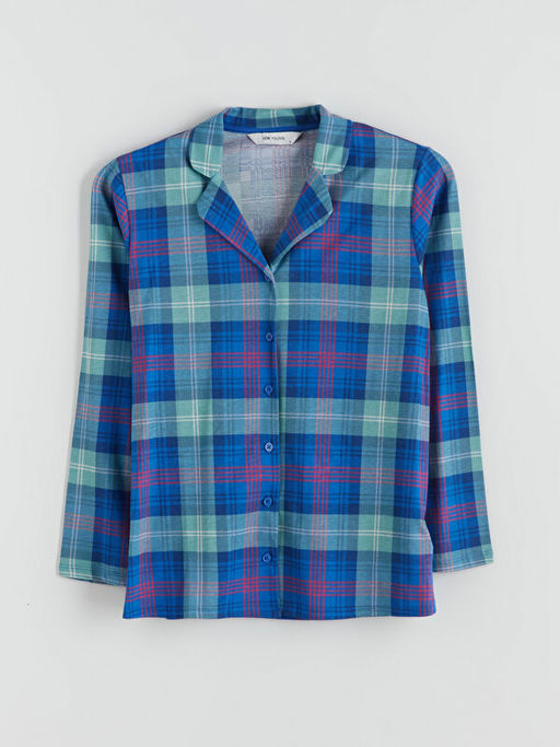 G?mlek Yaka Ekose Kad?n Pijama ?st