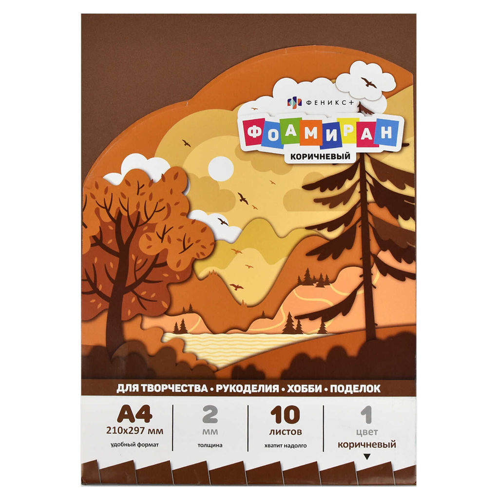 Фоамиран А4, арт. 65993 / 20 КОРИЧНЕВЫЙ (размер 210х297 мм, 10 лист/-ов, 1 цвет/-ов, флат-листы из ЭВА толщиной 2 мм; обложка: обложка-вкладыш, мелованная бумага 115 г/м?, полноцветная печать; индивидуальная упаковка: ПЭТ-пакет с европодвесом)