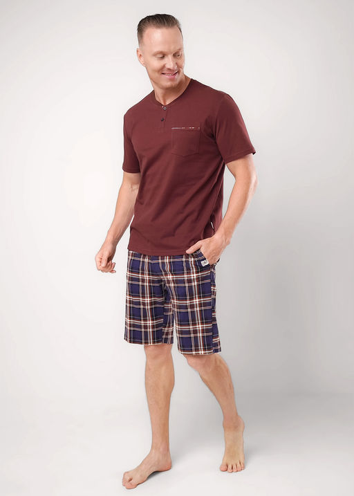 Набор мужской для дома состоящий из футболки и шорт. Футболка из кулирной глади с функциональной планкой, коротким рукавом и карманом. Шорты из клетчатого трикотажа с карбоном на эластичном поясе с функциональными карманами и шнуром.