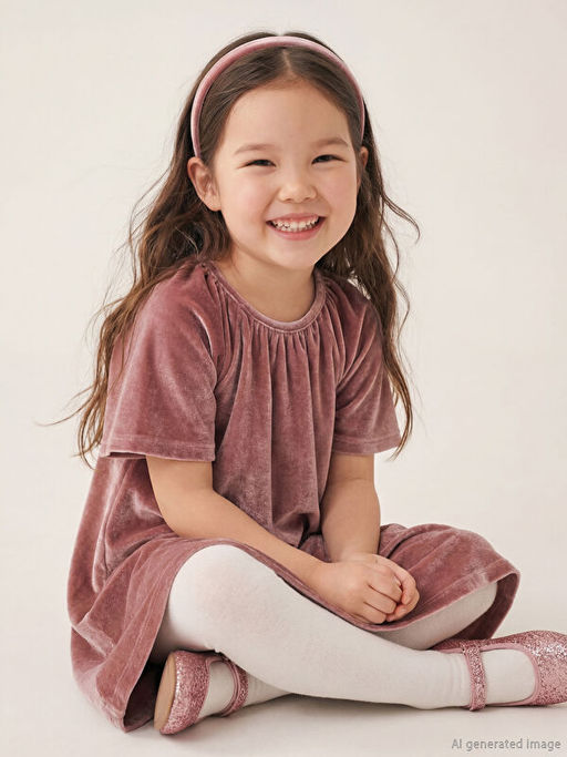 • Bisiklet Yaka Kadife K?z ?ocuk Elbise