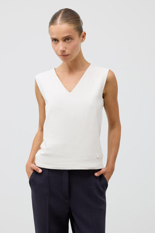 Классическим элементом гардероба является базовый топ с V-вырезом из хлопка. Широкие бретели делают изделие комфортным в носке и универсальным в повседневной жизни..Состав: 92% хлопок, 8% спандекс
