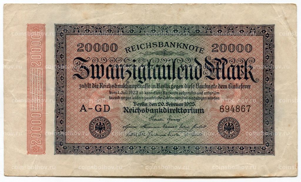 • 20000 марок 1923 года Германия