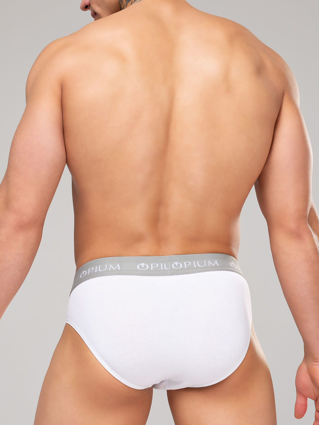 Классические слипы, из хлопка с эластаном, с фирменной резинкой с логотипом OPIUM. Выполнены в базовых цветах черном, белом и сером меланж.