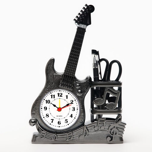Будильник «Гитара», дискретный ход, с карандашницей, 15.5×22×5.5 см, от батарейки АА, серебро