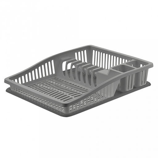 • Сушилка настольная для посуды пластмассовая "Степ малая" 38х32х5,5см, с поддоном, антрацит-серый (Россия)