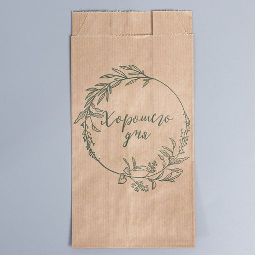 • Цена за 50 шт. Пакет бумажный фасовочный, упаковка, крафт, V-образное дно «Хорошего дня!», 20×11×4 см