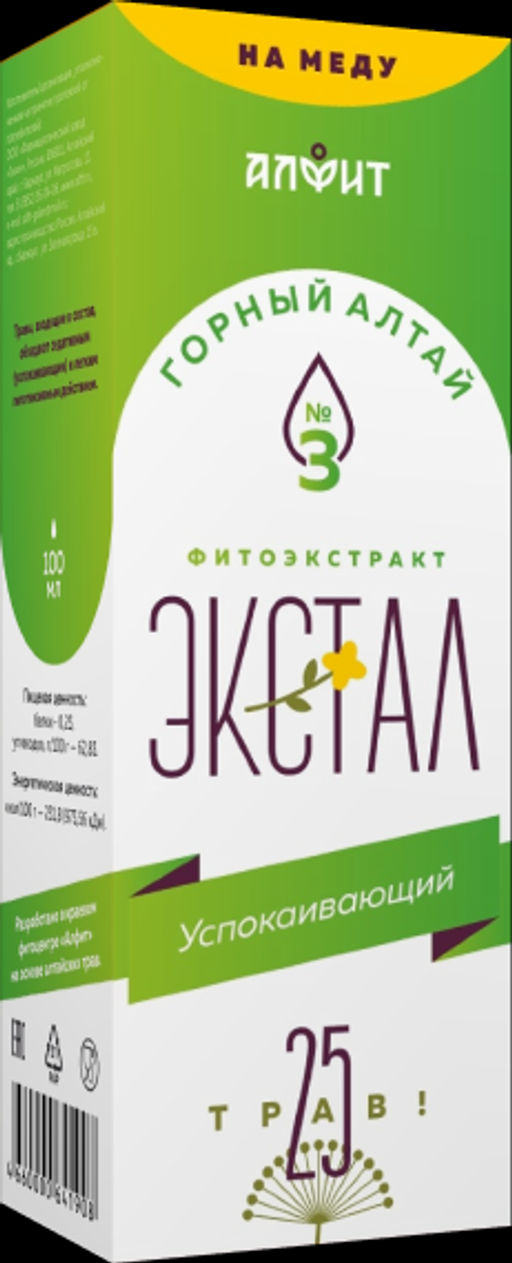 Травы, входящие в рецептуру Экстал-3 Горный Алтай, обладают успокаивающим действием, мягким гипотензивным эффектом, укрепляют гематоэнцефалический барьер.