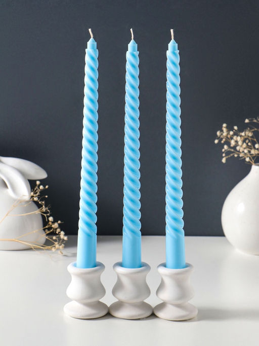 • Свеча витая 25 см (набор 3 шт) 57 гр, 5 ч, цв. пастельно-голубой